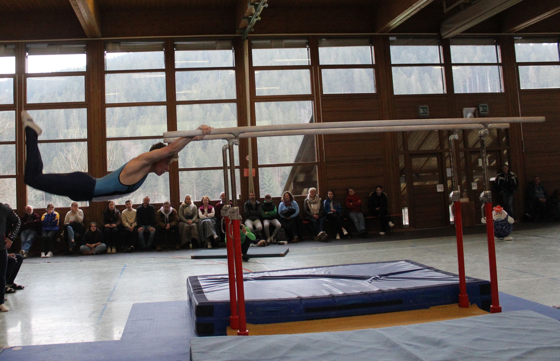 die Heimmannschaft, hier zeigt sich, dass es sehr schwer ist am Reck eine vollständige Übung zu